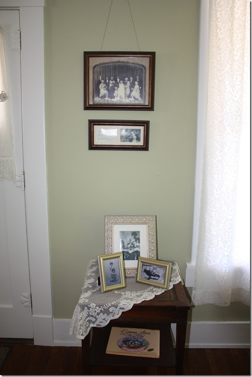 I spotted this chandelier as soon as I walked in the room. There is one in each of the front rooms. I love how she wrapped some green and white polka dot wire ribbon around the chain, hiding it and tying in the wall color.